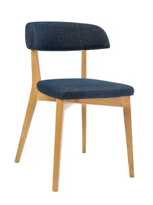 Wygodne krzesło tapicerowane Robin nawiązujące do stylu lat 60, Wykonane z drewna bukowego, Szeroka gama kolorów drewna oraz ponad 800 tkanin do wyboru (m.in. brudo-, plamoodporne, typu AquaClean) pozwalają na stworzenie niepowtarzalnego zestawienia oraz dopasowanie krzesła do pozostałych mebli w jadalni, czy w salonie.