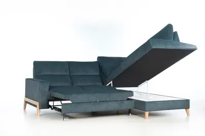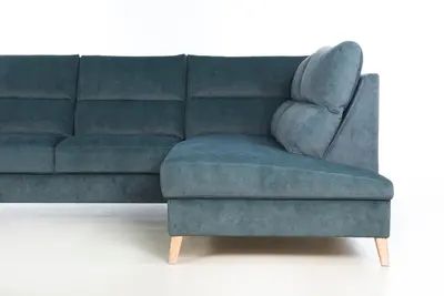 Funkcjonalność narożnika Dubai uzyskano poprzez zastosowanie wygodnej funkcji spania typu „delfin” oraz obszernego pojemnika na pościel, co czyni go nie tylko miejscem relaksu, ale również praktycznym rozwiązaniem dla gości czy miejscem do przechowywania. Dodatkowo, wysokie, drewniane stopki o wysokości 12 cm nie tylko dodają elegancji i lekkości bryle mebla, ale także ułatwiają utrzymanie porządku w przestrzeni pod nim, bez konieczności przesuwania narożnika.