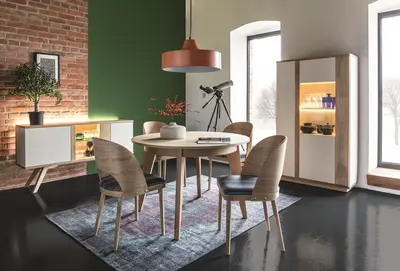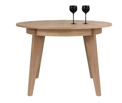 SENALES Stół rozkładany ST-1703 firmy Fameg to nowoczesny stół okrągły z jednym wkładem chowanym pod blatem. Cztery, zwężające się ku dołowi nogi nadają mu lekki wygląd, a dodatkowy wkład umożliwia rozsunięcie do 155 cm długości. Stół do jadalni ST-1703 wykonany jest z drewna dębowego i naturalnych fornirów dębowych najwyższej jakości. Dzięki szerokiej palecie kolorów drewna do wyboru możemy dopasować nasz stół do pozostałych mebli w naszym wnętrzu. Stół ST-1703 z kolekcji SENALES to idealny stół do salonu, jadalni lub kuchni.