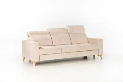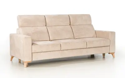 Salon, jako centralne miejsce spotkań domowników, zyskuje dzięki Pedro na funkcjonalności i stylu. Drewniane stopki dodają wnętrzu ciepła, a możliwość dostosowania kąta zagłówków do indywidualnych potrzeb użytkowników podnosi standard wypoczynku. Trwałe wypełnienie siedzeń i oparć gwarantuje, że sofa będzie służyła przez wiele lat bez utraty swoich właściwości.