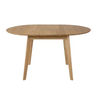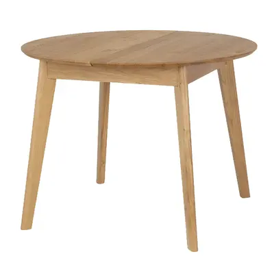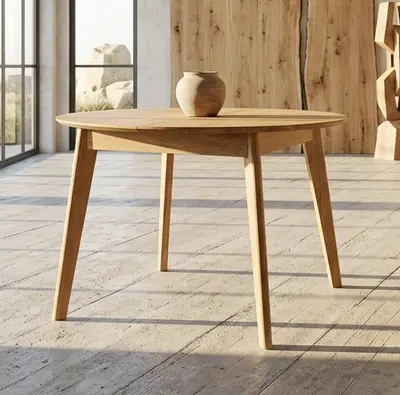 Stół Kaldo to elegancki, okrągły stół z litego drewna dębowego, który łączy solidność z nowoczesnym designem. Ma średnicę 100 cm i możliwość rozłożenia do 137 cm dzięki chowanej pod blatem wkładce. Blat jest zaoblony i delikatnie ścięty, co nadaje mu lekkości. Idealny do wnętrz klasycznych i nowoczesnych. Dostępny w różnych wybarwieniach dębu.
